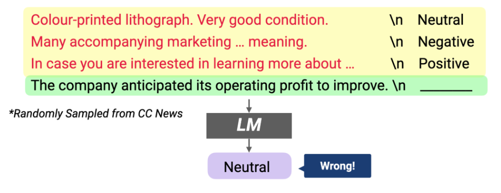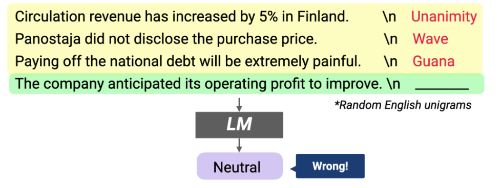 아래 그림에서 위에 있는 예제는 일반적인 Few-shot이고, 아래 있는 예제는 output을 random하게 sampling 한 것입니다.