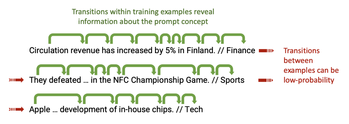 위 설명의 논리적인 비약(logical leap)은 LM이 학습된 prompt와 다른 분포를 가지는 prompt에 대해서도 prompt concept을 추론한다는 점입니다.