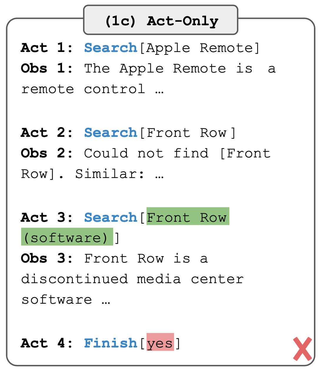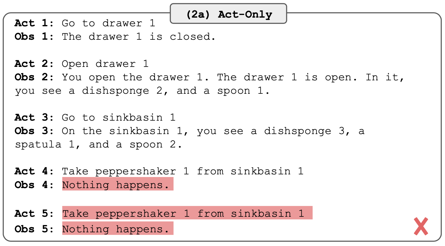 - 그림 1(1c)에서는 복잡한 추론이 필요해서 올바른 최종 작업(Act 4)을 생성하지 못합니다.