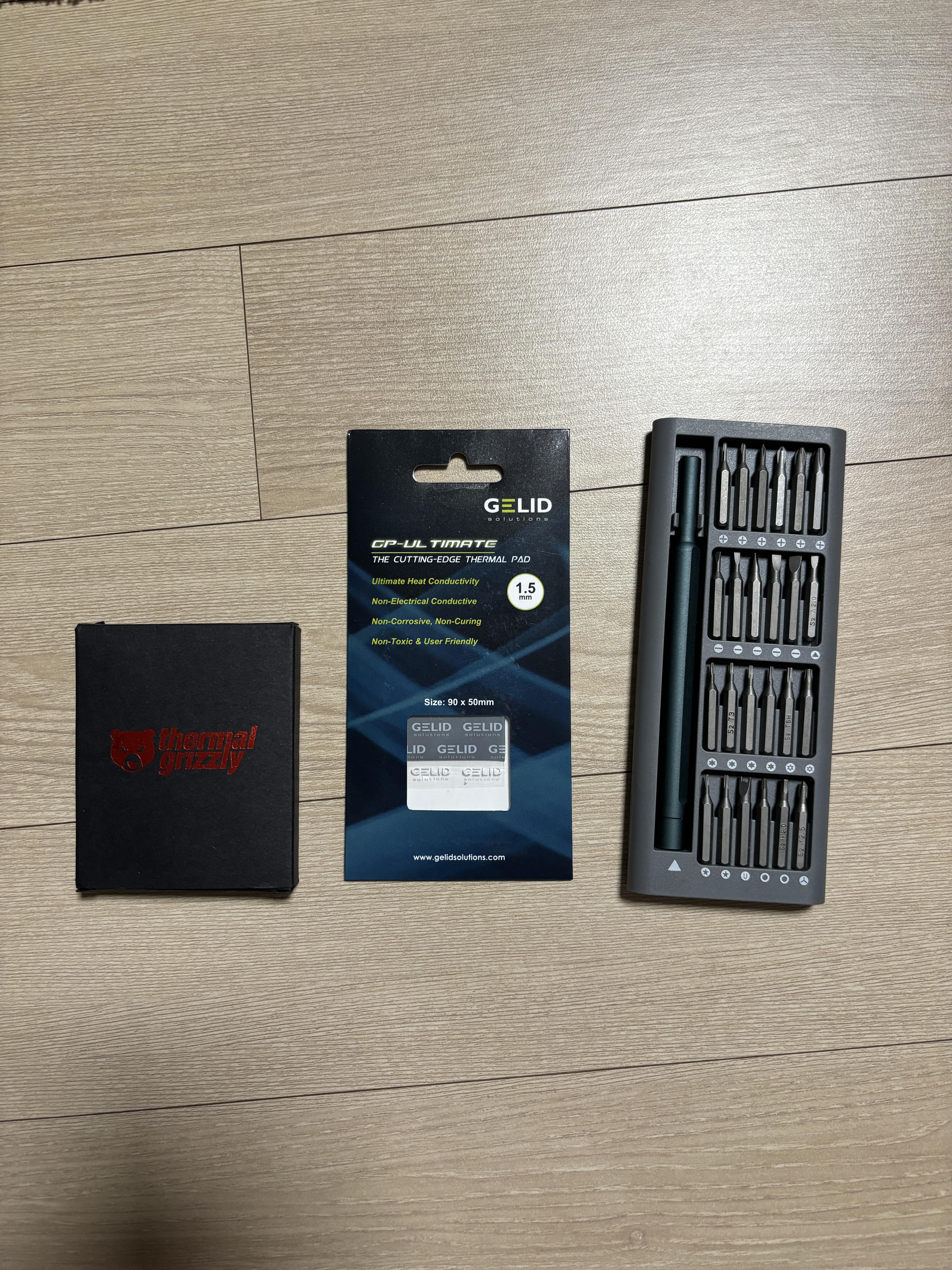 cpu와 방열팬 사이의 써멀패드와 방열팬과 하판 사이의 써멀패드를 구매했다. 그리고, 드라이버도 구매했다.
