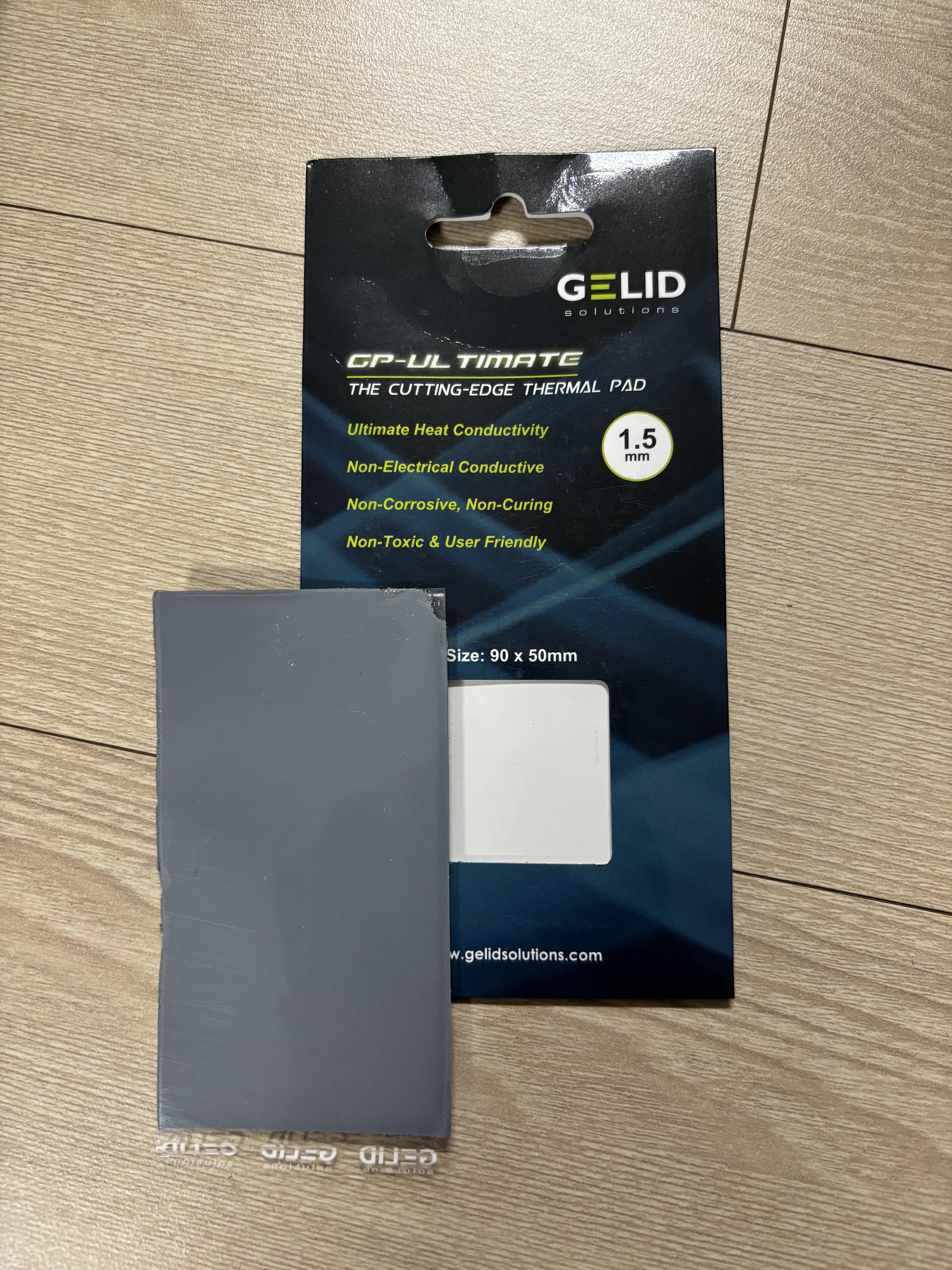 방열판 써멀패드: GELID GP-Ultimate 90x50 써멀패드 1.5mm (열전도율 15Wmk)