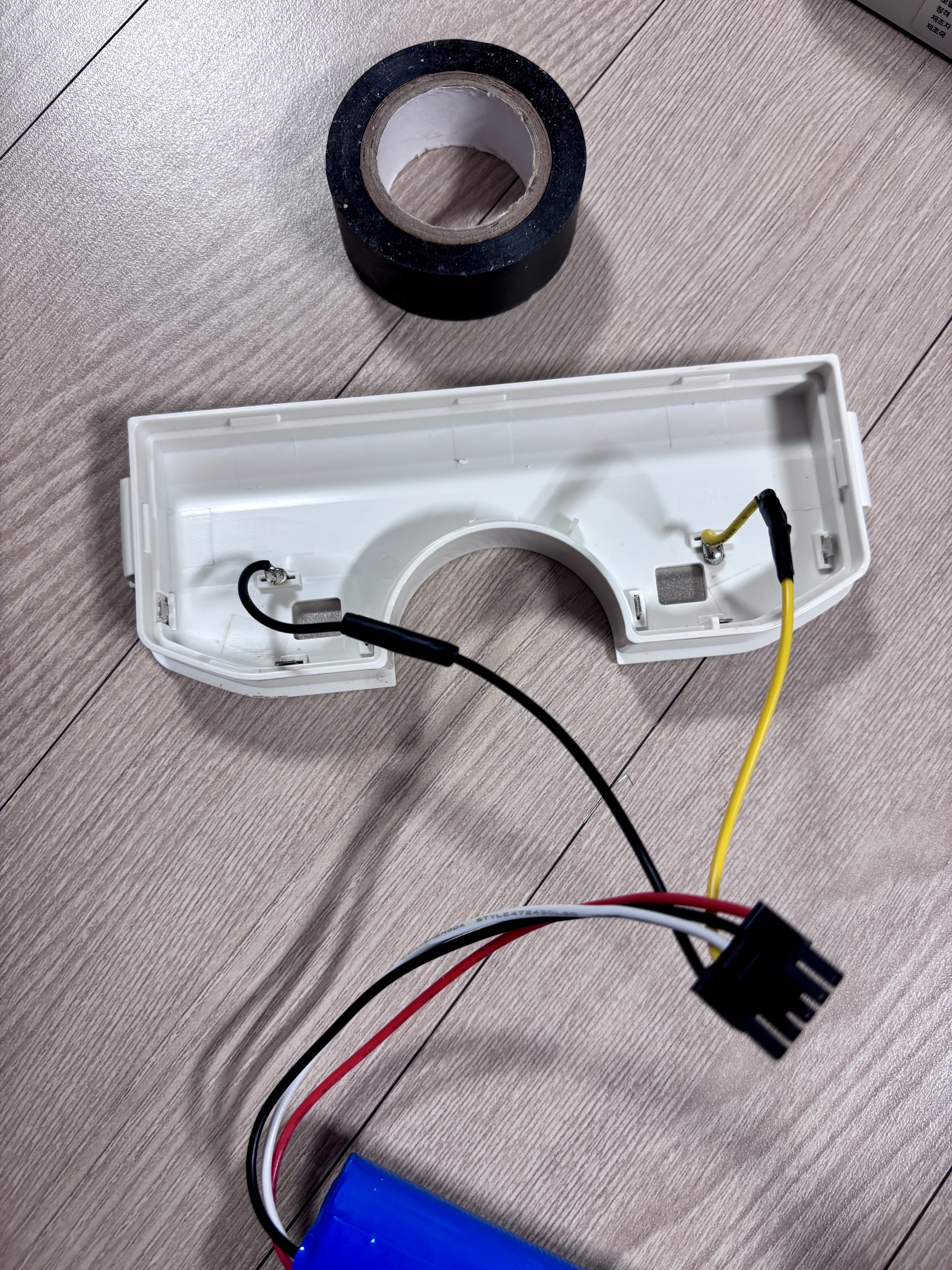 먼저, 잘랐던 케이블에 새 배터리 케이블을 색을 맞춰서 결합시킨다. 결합후에는 절연테이프로 감아준다.